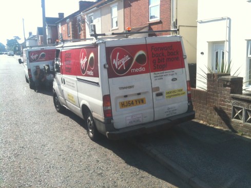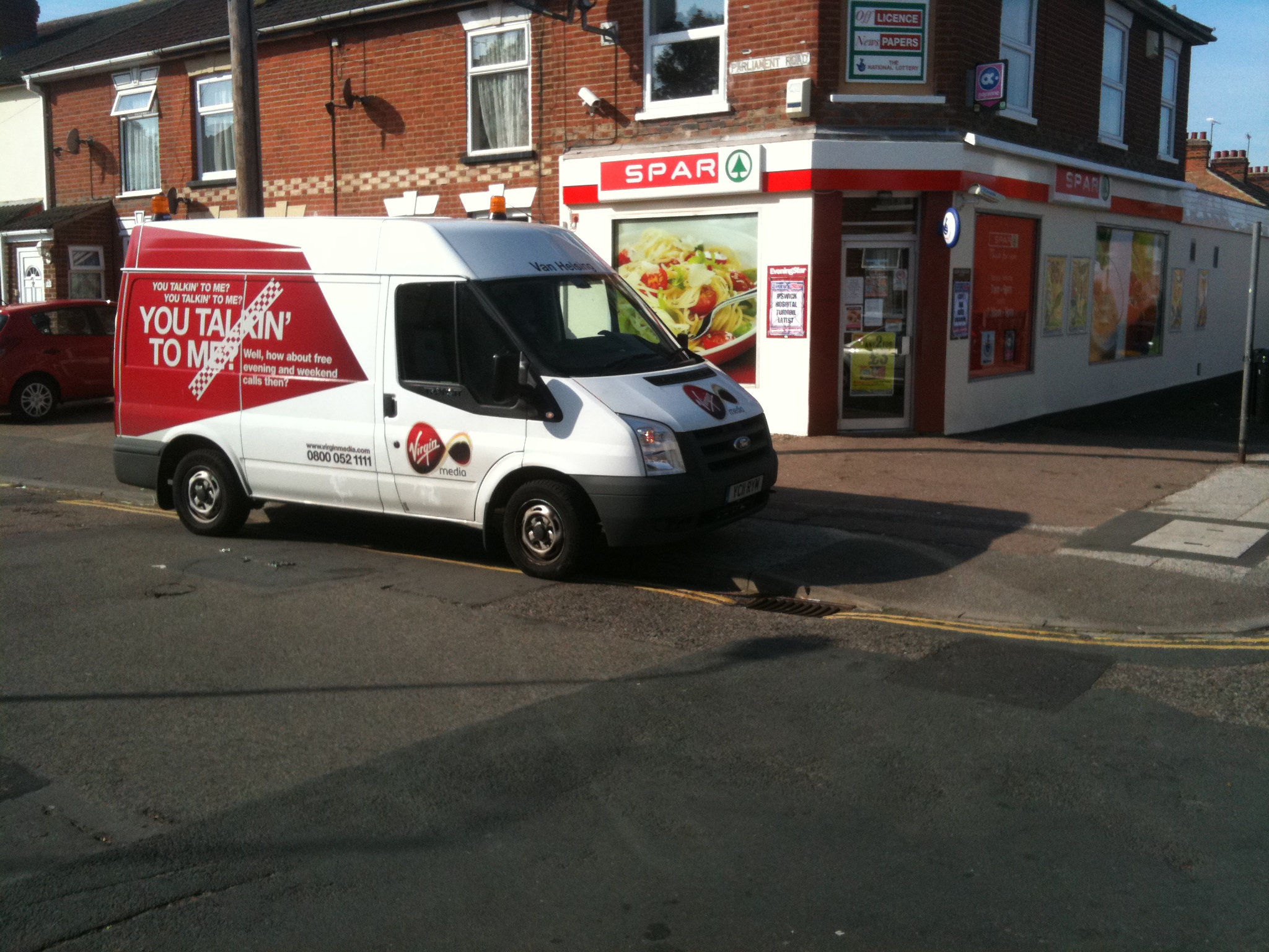 8 OctSky and Virgin Media have excelled themselves over the past two weeks around here. The driver of the Sky vehicle parked right across the pavement on a double-yellow line told me ‘he would park exactly where he wanted to’ (the message ‘lost’ on the side of the vehicles seems pretty appropriate in the circumstances). Neither of the three Virgin Media drivers I spoke to gave a damn.; the pair sitting waiting beside their vehicles which were completely blocking the pavement said they would leap up and move their vehicle at the first sign that a mother and child wanted to use the pavement (even though they were sitting so they wouldn’t see anyone trying to use the pavement anyway). The young driver who parked on the pavement on the double yellow outside the shop seemed to genuinely have no idea what the problem was. Do these companies give a damn? Do they have any policies on the subject? Should their Health and Safety policies not say that they should leave pavements clear? Should a driver who blocks a pavement not face an internal disciplinary process? Possibly we should ask companies for their policies for the environment, community and safety.