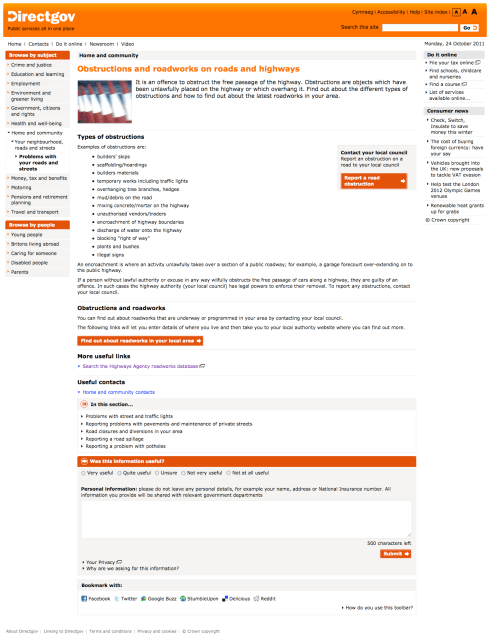 DirectGov guidance on obstruction (screen grab from 24 October 2011)