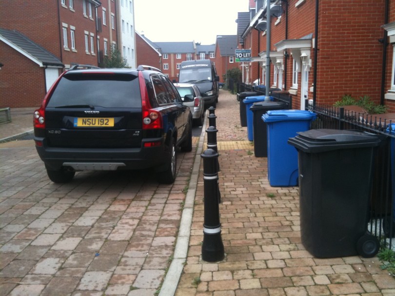 Bins permanently blocking the pavement, no response following complaint