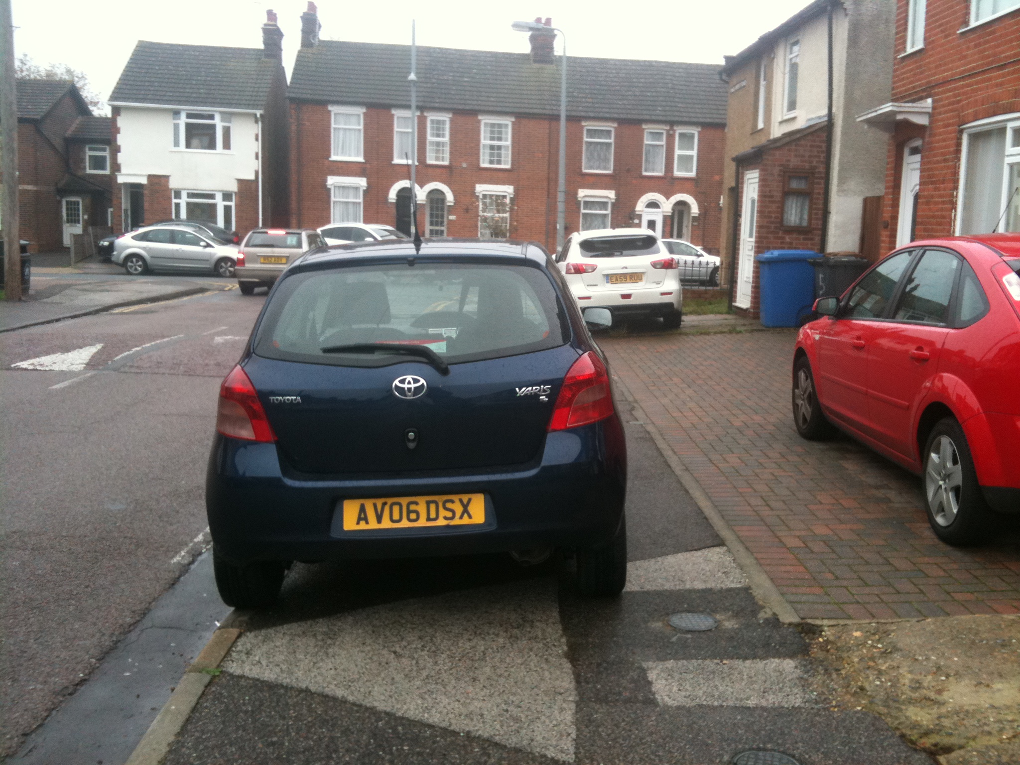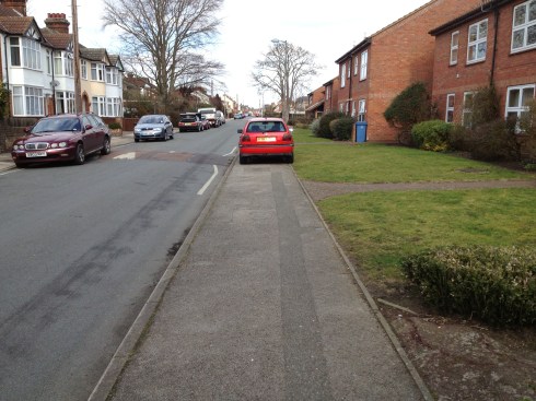 Here is a view from the other direction, the diagonal black car was ‘only going to be 2 minutes’. The other back car it probably partly partially obstructing the footway.