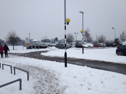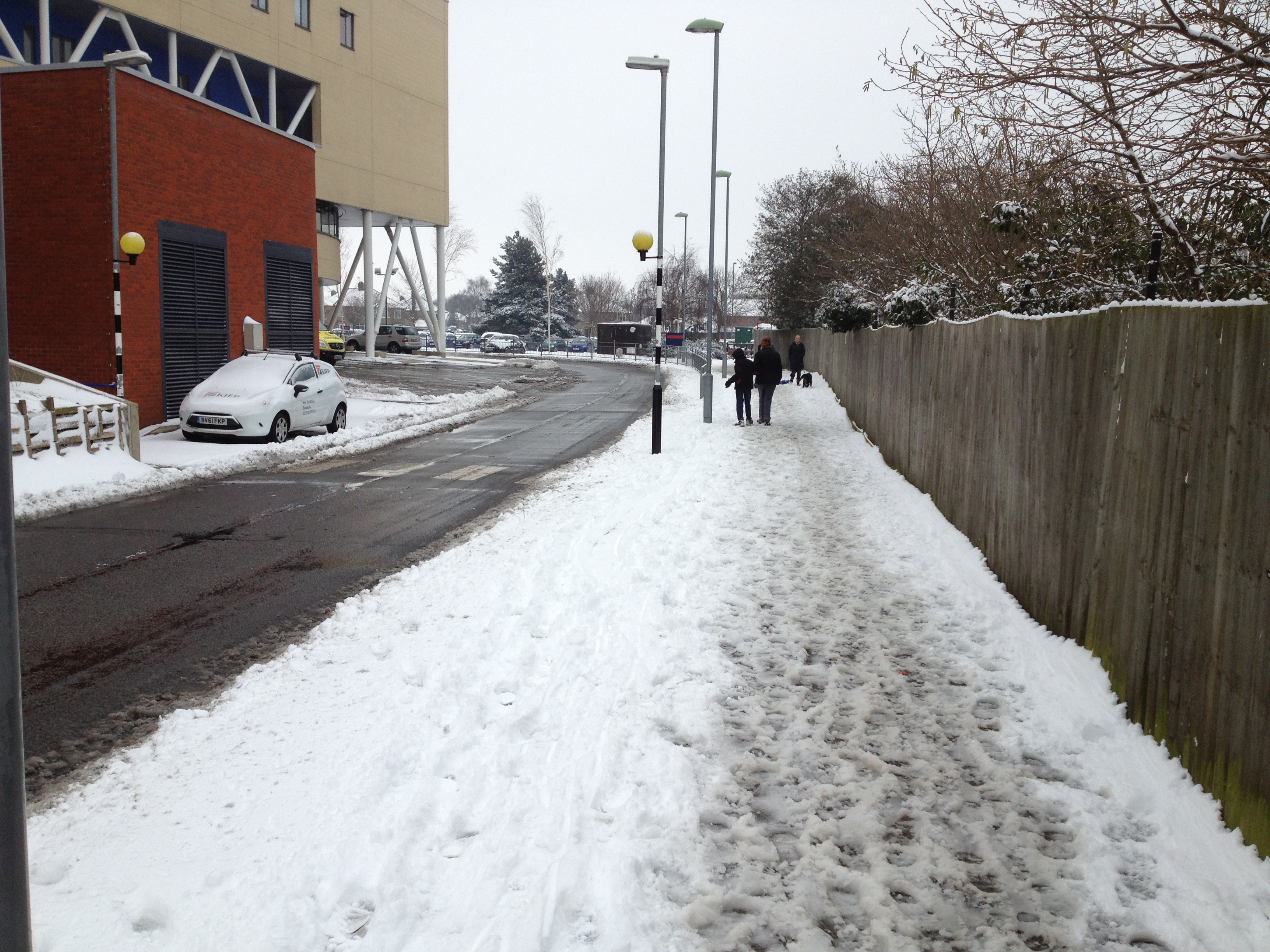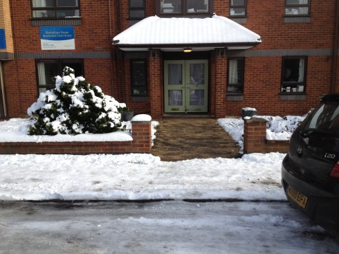 Some of their pavements had been dressed with salt but there was then too much snow for that and the paths were soon covered in slush and will probably freeze solid tonight. It’s a good job that emergency services are just round the corner! All of the following pictures were taken on busy routes on hospital grounds.