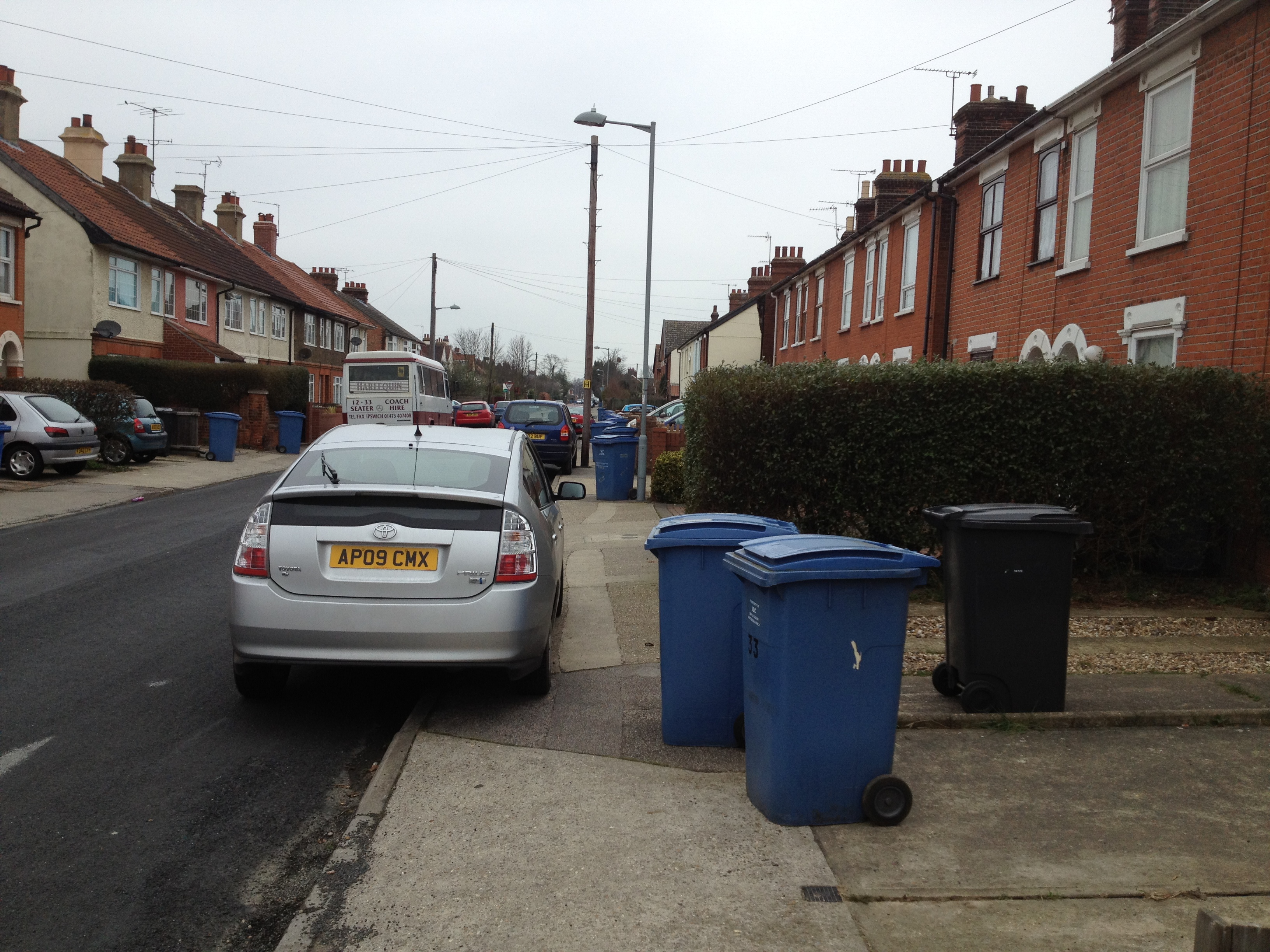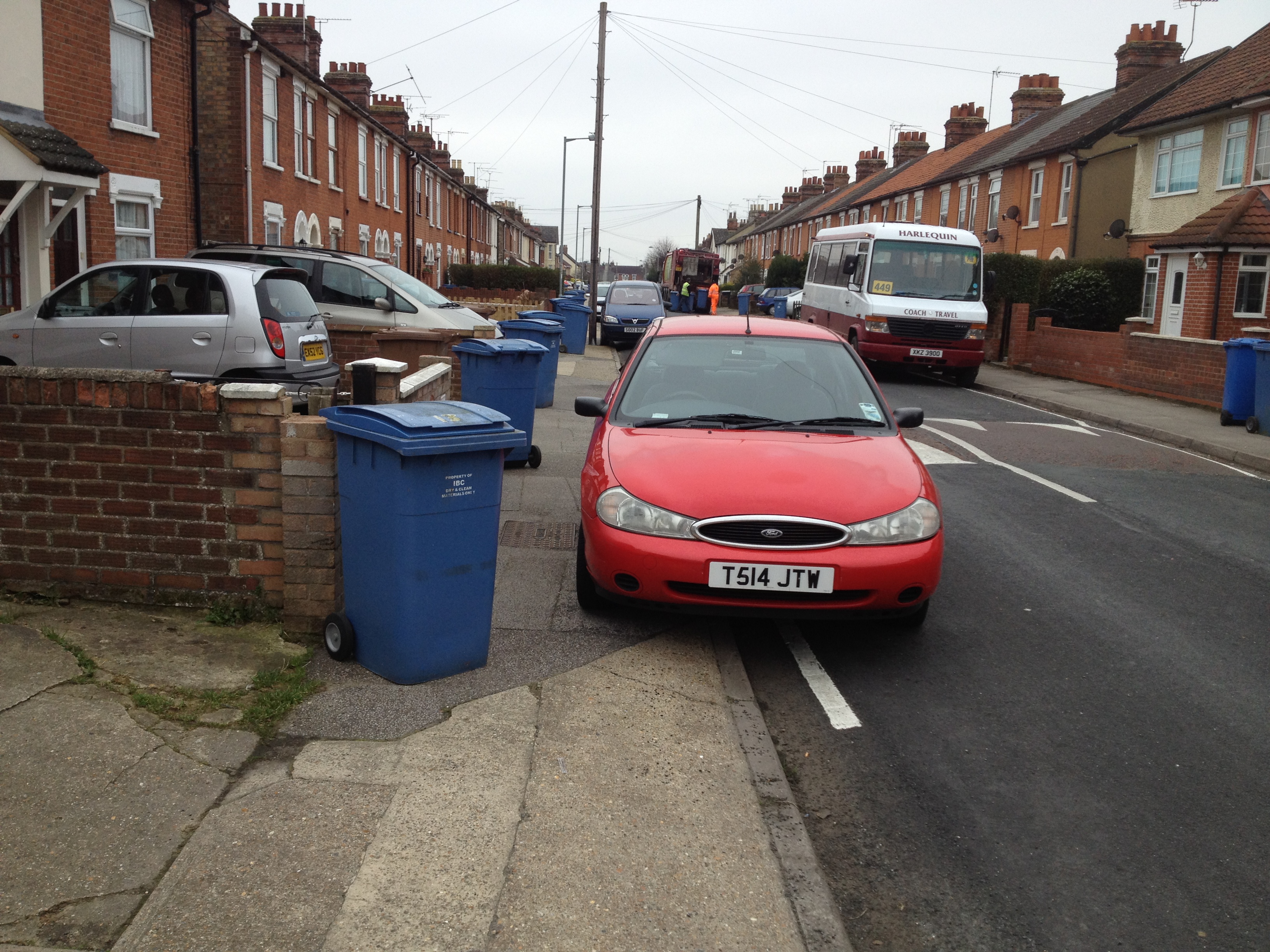 So now we move the the next street where the bin collectors have left the bins neatly scattered across the pavement next to the cars which was also oh-so-elegantly up on the pavement making the pavement completely unusable. The bin-collector I spoke to was unapologetic and indicate that he was completely happy with how they had been left. His parting comment was ‘it is a kerb-side collection, not a garden collection’ which was clever of him! As regular readers will know I have been banging on to the local council about their bin collection policies for months now with no apparent effect.