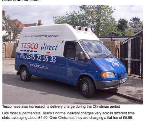 24 MarTesco appear to need help, and I am not talking about their ‘ shock profits warning‘ last week after which their UK boss quit; I am referring to a phone conversation I had with them yesterday following a complaint I had made in which they assured me that Tesco require all drivers to abide by all laws, including all motoring laws at all times. Now this is very interesting because rule 145 in the Highway Code which reads “You MUST NOT drive on or over a pavement, footpath or bridleway except to gain lawful access to property, or in the case of an emergency” with a penalty of £500 for each offense (Highways Act 1835 section 72). They assured me that they never allow their staff to break this law!